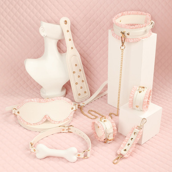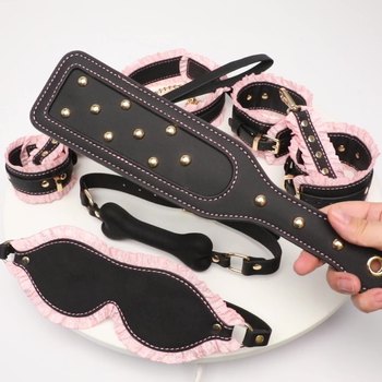 Ninghao Pink Frilly Bdsm Set con los ojos vendados Collar Spanking Paddle Muñequeras Correa Romántico Juego íntimo Gear para parejas